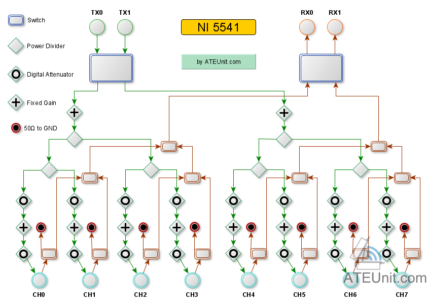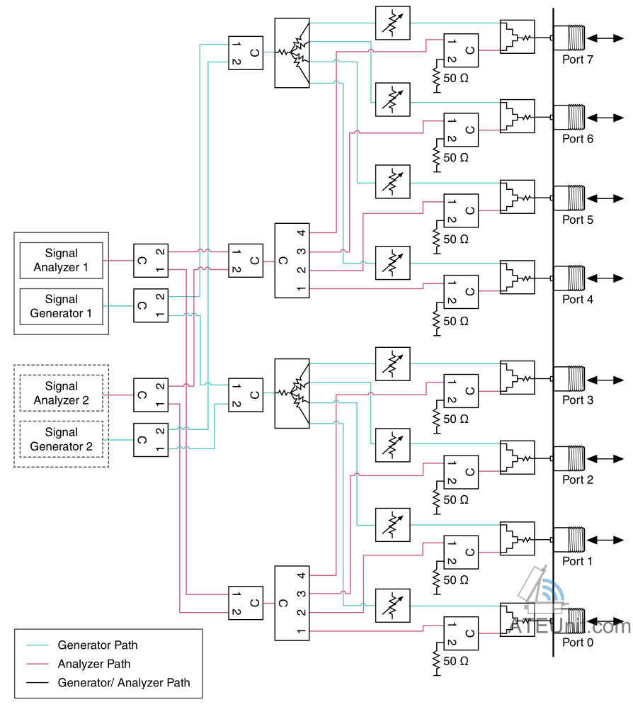 NI 5541是一个8口射频交换矩阵,内部原理如下: